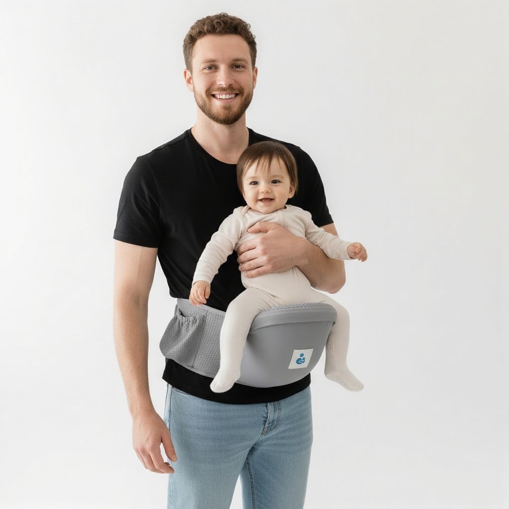 Le siège de hanche qui soulage vos bras et préserve votre dos. Clipsez, scratchez, portez. Idéal pour les papas (et les mamans) qui bougent.