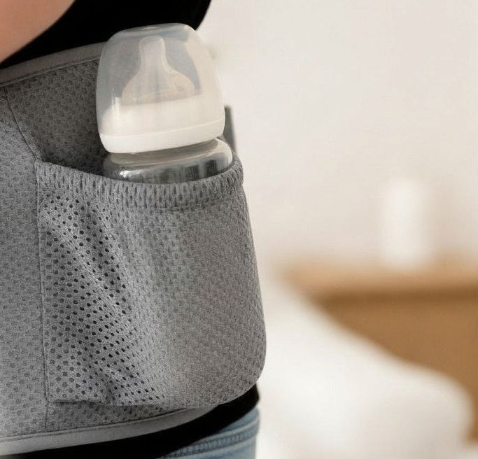 Le Cudloo basique libère déjà une main par rapport au portage classique. Pour une liberté totale, notre kit mains libres sécurise bébé pendant que vous bougez : récupérer la tétine, tenir la main de l'aîné, porter vos courses... tout en gardant bébé parfaitement stable.